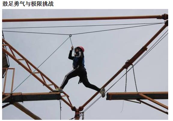 高空断桥:8米的高台,20厘米宽的短板,学员勇敢挑战自我,战胜自我,在台下同学们的不断鼓励加油下,跨过一米多宽的断板。