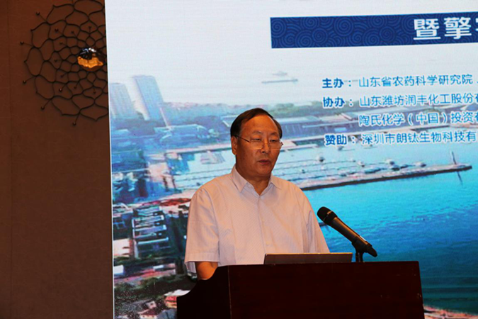 山东省农业厅副厅长褚瑞云先生致词,他提出新的环境下企业在追求利益最大化的同时更应富有社会责任感。农业是国家基础,农药是国家的战略产业,增强企业的责任,给企业以信心。我们要把粮食安全、食品安全放在前列。农药企业进入园区,要依法制药,要从生产、经营、应用、策略各个环节进行改革,转变产业布局,规范生产工艺,优化产品结构,走符合绿色安全高效农药发展道路。
